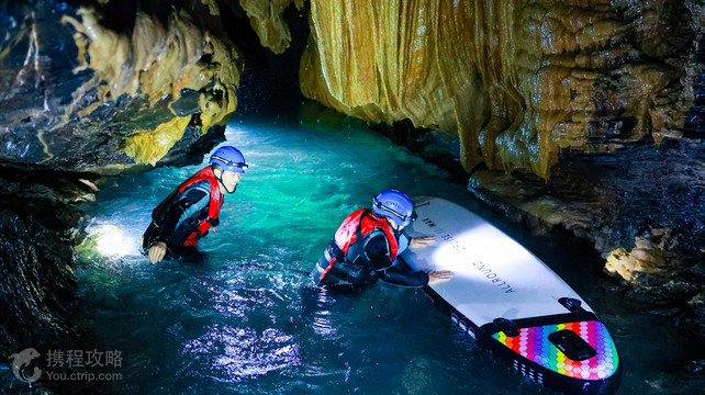 一、景区类型:自然奇观 + 户外探险双属性湘西魔幻蓝洞位于湖南省湘西土家族苗族自治州花垣县,属于喀斯特溶洞与地下河系统形成的自然奇观。与常规开发的灯光溶洞不同,这里是未经人工修饰的原生态洞穴,集探险性、神秘性与地质科考价值于一体,被户外爱好者称为 “湖南版魔戒秘境”。景区核心体验以洞穴探险、水上运动、地质探秘为主,适合追求刺激与自然野趣的深度玩家。二、核心游玩内容:六大沉浸式体验1. 地心穿越:四小时与世隔绝的探险线路亮点:穿越地下河、钟乳石迷宫、狭窄裂隙等复杂地貌,需交替使用绳降、攀岩、泅渡、桨板等技术。沿途可观赏万年水蚀形成的边石坝、石珊瑚、天生桥等地貌奇观,感受地壳运动的鬼斧神工。装备支持:专业团队提供3mm 潜水服(防寒防刮)、UIAA 认证头盔、救生衣、头灯等全套探险装备,确保安全与舒适。2. 魔幻蓝洞桨板:在果冻水中漂浮独特体验:在地下河的 “蓝洞” 水域划桨板,水质清澈如翡翠,阳光透过溶洞天窗洒下,形成 “蓝色果冻水” 的奇幻视觉效果。洞内岩顶矿物质在灯光下闪烁,宛如梵高笔下的星空顶。摄影彩蛋:专业摄影师随行跟拍,捕捉桨板倒影与钟乳石同框的震撼画面,精修照片和视频可直接刷爆朋友圈。3. 秘境探幽:徒步与溯溪的双重挑战穿越路线:从洞口沿地下河逆流而上,需趟过浅滩、攀爬岩壁、穿过仅容一人的 “时空隧道”。沿途可偶遇蝙蝠群、盲鱼等洞穴特有生物,感受生命禁区的顽强生机。安全保障:每条线路均由资深领队提前踩线排危,活动前进行 20 分钟安全培训,确保新手也能参与。4. 极限挑战:跳潭与潜水的勇气试炼进阶玩法:在地下河深潭区域,可体验3-5 米高台跳潭(需教练评估后参与),或穿戴专业潜水装备探索暗河支流,近距离观察钟乳石群的水下形态。装备优势:提供专业潜水服,既能抵御低温又能防止岩石刮伤,确保水下活动的舒适性与安全性。5. 光影艺术:洞穴中的自然剧场奇幻光影:在特定角度,阳光透过溶洞缝隙形成 “丁达尔效应”,与洞内水汽结合产生彩虹光晕,配合钟乳石的剪影,营造出《盗墓笔记》般的神秘氛围。拍摄技巧:建议携带三脚架和手电筒,利用慢门拍摄水流轨迹,或用侧光突出钟乳石的纹理质感。6. 文化彩蛋:土家族古洞传说历史探秘:当地流传着蓝洞与土家族祖先的传说,洞内岩壁上隐约可见古代岩画,领队会结合地质演化史与民族迁徙故事,为游客解读洞穴的 “前世今生”。