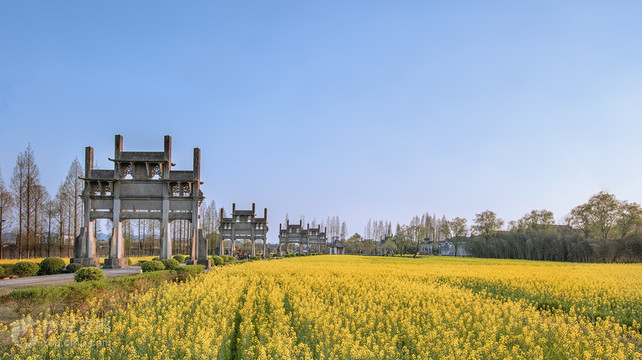 棠樾牌坊群位于歙县西郊约6公里处,共有七块,一座接一座横跨于乡间的石板路之上,气势非凡。每到4月,道路两旁的田地油菜花盛开,把牌坊衬托得更有味道。离牌坊不远处是鲍家花园,可以在园内看到许多盆景。 牌坊群的七块牌坊以“义”字坊为中心,按忠、孝、节、义的顺序由两头向中间排列,鲍家花园-鲍灿孝行坊、慈孝里坊、鲍象贤尚书坊为明代牌坊,鲍文龄妻江氏节孝坊、乐善好施坊、鲍文渊妻节孝坊、鲍逢昌孝子坊为清代牌坊。牌坊是古代为表彰功勋、品德卓越的人士而建立的,所以每一块都来之不易,背后都有感人的故事。 不要错过这三座牌坊:鲍象贤尚书坊、慈孝里坊、鲍文渊妻节孝坊。鲍象贤尚书坊始建于明天启年间,鲍象贤戍边有功,被皇上恩泽三代,其祖父鲍灿的孝行坊也是他赢来的。明代的慈孝里坊为父慈子孝而建,当时鲍氏一对父子为叛军所获,两人中要杀一个,父子二人争死以求对方活下去,令人动容。鲍文渊妻节孝坊建于清乾隆年间,为一个29岁开始守寡终身的上海女子而建。 牌坊群旁还有两座祠堂,棠樾村中鲍姓是大姓,祠堂中供奉鲍氏家族。鲍家花园-敦本堂,又称鲍氏支祠,俗称男祠,规模宏大,祠内有义田规条碑和嘉庆皇帝上谕碑等碑刻。清懿堂(女祠)又称鲍家女祠,非常特别,专为鲍氏历代贞妇烈女而建,徽州男人出门经商长久不在家,徽州女人只能独守空房到终老的历史,通过祠堂依稀可见。 鲍家花园和棠樾牌坊群相距不过500米,到了牌坊群,再去鲍家花园看一看也是必须的。清代的私家园林里,摆满修剪精致的盆景,其中有两百多年培养历史的“南国风情”古榕树是“镇园之宝”。