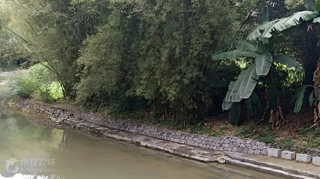 石跳桥是黄姚古镇景点之一,整座桥长19m,由31个石墩组成,石墩由两块高矮不同长宽相同(约35㎝)的正方形面青石条组成。高石墩露出水面,较矮的石墩埋于下方,起支撑作用,而31个石墩间距按人行走步伐恰当排列,既利人行,又不影响泄洪。而且由埋在河床下的松木固定在一条直线上,上小下大,既小巧,又牢固。