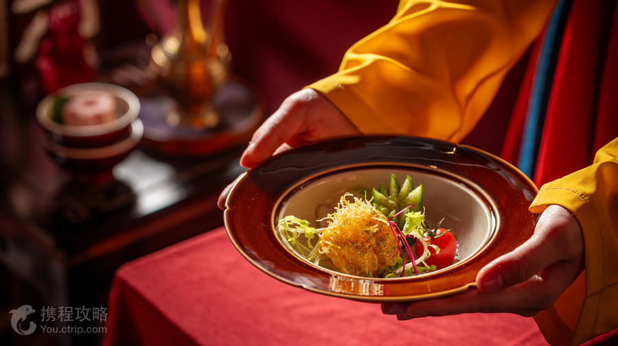 * 一席御宴,半部中华礼;食礼传千年,宴启新国潮”—— 福州御宴以中华千年 “食礼” 文化为魂,融合宫廷雅韵与沉浸式体验,打造集美食、演艺、历史于一体的国风文化盛宴,让食客在觥筹交错间触摸历史脉络,在味觉享受中感受传统文化的鲜活魅力* 福州御宴以古代宫廷为主题打造用餐环境,从整体装修风格到细节摆件皆充满古风韵味,营造出浓厚的历史氛围。店内精心设计多种特色场景,如还原大秦帝国气象的主题空间 —— 灯光采用古朴烛火式暖光,墙面饰以秦代纹样与兵器元素,桌椅复刻古代宫廷制式,连服务员服饰都贴合对应朝代风格,让食客踏入餐厅的瞬间,仿佛穿越时空,置身于恢弘典雅的古代皇家宫殿,沉浸式感受千年宫廷的庄重与雅致* 作为聚焦 “传统文化” 的沉浸式礼宴,福州御宴打破传统餐饮边界,将古文化、非遗演艺与宫廷宴席深度融合。从食客迎宾开始,便有遵循古代礼仪的侍者引路,行揖礼、奉茶礼,尽显宫廷礼序;用餐过程中,古乐器演奏(如古筝、编钟)的悠扬旋律萦绕耳畔,传统戏曲(如昆曲、闽剧)的婉转唱腔、古典舞的翩跹舞姿轮番上演,更有以历史故事为背景的话剧、音乐剧片段穿插其中,让食客在品尝美食的同时,通过听觉、视觉的多重刺激,深度沉浸于中华传统文化的魅力之中,每一刻都如同置身古代皇家盛宴* 福州御宴不仅是味蕾的盛宴,更是中华传统文化的 “活态博物馆”。它以 “食” 为载体,将宫廷礼仪、非遗技艺、历史故事与当代餐饮体验创新融合,打造长达 90 分钟的沉浸式宴饮体验。在这里,食客既能品尝到融合古今的精致美食,又能通过演艺、环境、礼仪触摸到可感知、可参与的历史;既能享受都市餐饮的舒适便捷,又能重拾中华传统文化的厚重与温度,最终收获一场视觉、听觉、味觉、触觉交织的双重盛宴,在一餐一宴间,读懂中华 “食礼” 的千年传承