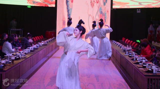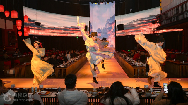 * 来到贵阳绫罗宴仿佛穿越了时空,在这里体验古代的辉煌,身着华丽古装,仿佛变成了文人雅士,享用一场穿越古今的文化盛宴* 当灯光亮起,舞者仿若从千年壁画中翩然苏醒,她的身姿,是飞天婀娜的剪影,轻盈若云间飘带,灵动似佛前瑞鸟,表演者们身着锦衣华服,翩翩起舞,演绎着古代故事,每一个动作和眼神都充满情感,古曲之间仿佛梦回千年,赏古风乐舞,享古人浪漫* 丰盛的菜品精心制作,色香味俱全,用餐形式新颖,让人耳目一新,品一品美酒佳酿,尝一尝美食宴席,在贵阳绫罗宴古色古香的餐厅内入座,享用宫宴菜肴,欣赏乐舞,在觥筹交错中完成一场味觉和视觉的双重享受之旅* 全景沉浸式古装体验,这里提供多样的款式,丰富的服装可供你选择,让你一秒变身古代佳人,享受古人浪漫