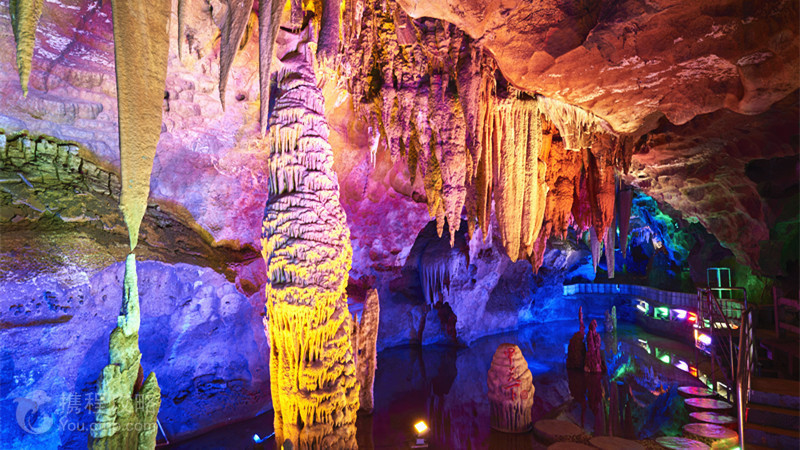 穿山景区位于桂林市中心,漓江东岸,距离桂林火车站仅10分钟车程。景区内穿山岩溶洞中千姿百态的钟乳石,是桂林的老牌溶洞景观之一。景区中两处获得吉尼斯世界纪录的景观也不容错过。景区全程游览大约1小时,步入景区,远远便能看到对面的孤山上矗立着一座佛塔,山与塔倒影在江水中,景色优美。这便是“塔山清影”,因为它创下了“世界上小的孤峰,托起了世界上高层次的佛塔”的吉尼斯世界纪录,而格外受追捧。游人可隔江远望,在这边“塔山清影”的石碑前拍照留念。接下来便是景区的主打项目穿山岩溶洞,这里的溶洞也是典型的喀斯特地貌,虽说没有七星岩那么出名,但规模也不小。游览岩洞需一路步行,依旧是“三分形象,七分想象”,景区在一些景观前放置了诸如“麻姑献桃”、“仙人指路”之类的灯箱,帮助游人想象。游览中留意一处名为“四体石盾”的景观,它是景区中第二处创下吉尼斯纪录的景观,这次是“世界溶洞中单柱钟乳石上连体石盾数量之”。游完溶洞,你可以走上湖心岛观景拍照。此外,景区内还有梁漱溟之墓、翰苑碑林、月岩等小景点可供探寻。