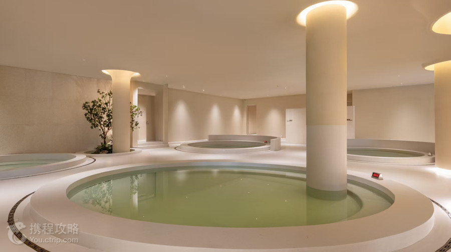 14处户外汤池错落于庭院之间,与5个室内汤池相映成趣——「沧浪」泡池区中,氤氲着氡温泉池的柔润、中药池的草本芬芳与原汤池的纯粹;风吕「美肌」「电气」则以特殊成分带来别样体验。高温盐浴如雪原般纯净,酵素桧木浴散发着森林气息。无论是晨曦中在「四时」瑜伽房舒展身心,还是暮色里浸泡汤泉仰望星空,这里都是与自然对话的疗愈场域。 主要功能: 室内外汤泉、高温盐浴、干/湿蒸房、酵素桧木浴、泳池区、瑜伽房/冥想室,2间SPA房(4个床位),1间足疗室(3台沙发椅),棋牌室(7间),温泉休息区,VIP私汤房(2间),温泉餐厅/水吧酒吧