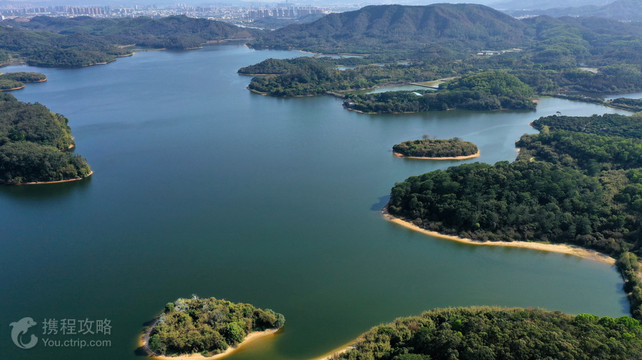位于东莞东南郊的同沙生态公园风光旖旎,落成于2006年,深受东莞市民及周边游客喜爱。园区占地面积约40平方公里,七分山林,三分绿水,常年鸟语花香,融山水生态与人文景观为一体,是东莞这座现代都市中属于自然的一叶绿肺。园区内长达15公里的环湖公路纵贯其间,游人缓行青山绿水环抱之中,豁然开朗的心境便也如同漫卷云舒。青山逶迤、绿荫叠翠的园区中,遍植松、杉、相思、黎蒴等树木70余种,各种栖息飞禽约30多类,一派生机盎然的现代桃源景象。