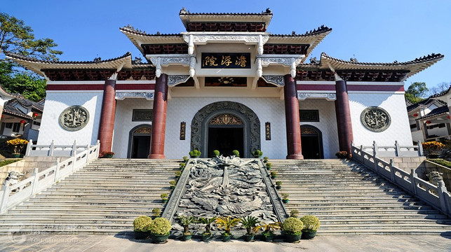 淡浮院位于潮州磷溪镇的砚峰山夏湖风景区,由泰国有名潮藉侨领郭丰源先生倡议,众多海内外俊彦热烈响应捐资建设的一座开放式收藏院。 入口是一座耸立的大石牌坊,三门歇山顶建筑,高16米,气势恢宏磅礴,正中题“东粤菁华”,两侧分别书有“金声”“玉振”,皆是国学大师饶宗颐先生的手迹。牌坊到正殿是三进石阶,院内花圃簇拥着石雕的麒麟、青狮、盘龙及铁牛等吉祥物。 巍峨瑰丽的正殿建筑,重檐出阁,琉璃飞瓦,四要玫瑰红的花岗石柱,稳重庄严。正中匾额“澹浮院”三个流金大字,系清朝末代皇帝之弟溥杰所书,门外挂的木刻对联“远望观云,登高视野”,为已故中国佛教协会会长、有名书法家赵朴初亲题。殿内藏有儒道释各派文化的代表文物。 游览淡浮院,吸引游客的莫过于主殿两侧长廓“中国历代书法碑林”。这里汇聚了上起商周、下迄当代的历代书法大家的真迹墨宝。令人须臾间,尽览五千年法书;旋足地,可观四海宝藏,弥足珍贵。 碑廊上方广场,矗立着交泰殿,是淡浮院主要收藏展览大殿。“交泰”中与北京故宫藏宝玺殿名相同,均取自《易》经“天地交泰”之意,但此处另有中泰文化交流之意。殿内有泰皇亲赐《玛哈蒙空佛像》一组金佛以及中华文化代表文物。 西侧有淡浮院-砚峰书院,内有黄苗子、饶宗颐等名家题字。该讲堂不时举办中华文化讲座和培训,亦可供贵客下榻,从城市回归自然,从繁华归于宁静,享受山清水秀之静美。 周围有百果园、与奇花异树、飞桥流水、绿茵宝鼎、潮汕茶食,是一处集文化、休闲于一体的中华文化精神家园。