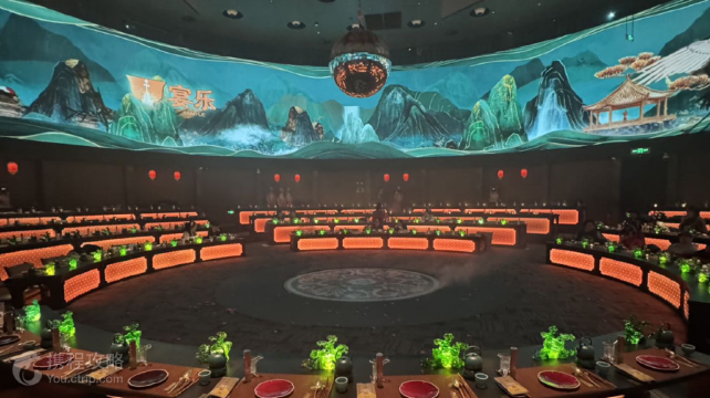 坐落于上海徐汇区龙启路的宴天下·宴乐,藏身西岸梦中心商圈,毗邻黄浦江畔与阿里总部,以「宴乐即传承」为核心理念,打造出集宫廷御宴、全息光影、汉服演绎于一体的沉浸式文化体验空间,让魔都食客在方寸之间,穿越千年赴一场古今交织的感官盛宴。 作为占地1800平方米的高端文化餐秀场,宴天下·宴乐的空间设计颠覆传统餐饮格局。环形大堂搭配360度环形3D大荧幕与全息投影技术,构建出全包覆式动态场景,时而切换为盛唐宫阙的恢弘壮阔,时而流转为江南水乡的温婉雅致,光影与古雅陈设相融,朱红雕栏、轻纱帷幔与科技光影碰撞,每一处细节都兼顾宫廷美学的厚重与现代设计的灵动,212个餐位错落分布,让食客无论身处何处,都能沉浸式融入时空幻境。 演艺与餐饮的深度融合,是宴天下·宴乐的灵魂所在。整场餐秀以「宴乐」文化为脉络,《万邦来朝》、《凤舞九天》等经典剧目轮番上演,古典乐舞、乐器合奏、华服走秀穿插其间,升降舞台与威亚技术加持,让演员彷彿从光影中走来,与席间宾客近距离互动。悠扬的古琴、婉转的唱腔与菜品的香气交织,构建出「食、观、听、感」四维体验,打破传统餐饮与演艺的边界,打造流动的宫廷剧场。