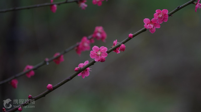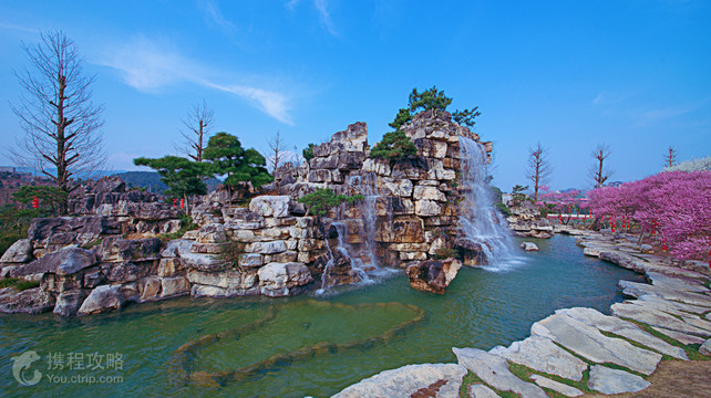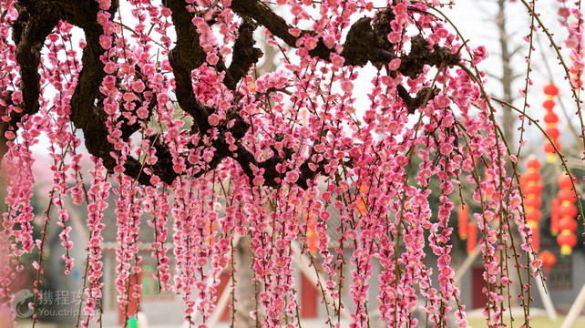 满园梅花流枝缀玉,穿插在奇石间,卧于溪水边,更有老藤古树、清溪秀竹,亭台水榭环绕着红梅绿萼,处处冷香迷雾,横斜影动,让人如坠入仙境一般。 乾艺梅园位于湄潭县县城中心,为湄潭县的一颗明珠,地理位置优越,交通条件便捷,是以梅花为主题的综合园林风景区,始建于2013年,园区占地面积约7万平方米。梅园旅游资源特色鲜明、内容丰富、类别多元,园艺工匠堆山造林,铸就了梅园的几大奇观,分别是垂枝梅园、踏雪梅园、晚春梅园、梅花盆景园、银杏古木观光大道、古香樟园、千年橄榄园。乾艺梅园以品种各异、造型独特的梅花为主题,梅花品种多达两百余个,早花品种主要包括复粉垂枝、东方朱砂、宫粉、绿萼等,分别设立垂枝梅园和踏雪梅园;晚花品种包括丰后、送春、美人梅等,并设立晚春梅园。利用独特的造景技巧,根据不同品种梅花的特点,依梅而置地形,以土造岭,引溪流而汇成塘,再配以假山奇石,异花古木,衬出梅花独特的傲雪、苍劲之美。梅花岭之下,衬有生态循环水体,水体之上,廊亭阁楼通达四方,或坐赏,或游走,或戏水,或作赋玩乐,潇洒得趣;环山梅玲之景倒映水中,与水中绿植交相辉映,相得益彰。其中,引自日本的造型垂枝梅尤为名贵,国内罕有,其花开时花枝呈伞状垂地辐射,似瀑布飞流、烟火绽放,美不胜收。梅岭之下,还有由造型奇特、蜿蜒婉转、苍劲古老的梅花盆景与嶙峋怪石搭配而成的梅花盆景园,身处园中,花开不同,造型各异,领悟繁多。古银杏古树参天、古香樟郁郁苍苍、古橄榄五人成围,百木成林,相得益彰,是国内不可多得的奇景。乾艺梅园以梅花为主题,以山水园林为主体,以景观石铺路,搭配齐全的旅游设施,冬春赏梅,夏观山水、莲花、牡丹,秋看古木银杏金叶漫天,梅花盛开时园中常有上万人同时游览,是一个省内省外游客观赏梅花山水、休闲娱乐、游玩赏乐的好去处。梅园于2021年春季初次开园,便迎来了10万余人的热潮,同年五月被评选为武陵山十佳人气景区。