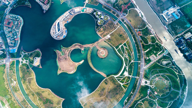 上海之鱼又名金海湖,位于奉贤区金海社区境内,以“金海湖”为主体,园内布置有艺术雕塑。