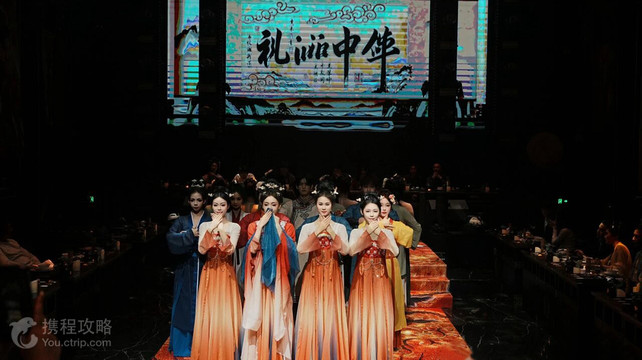 黄都礼宴位于厦门市思明区前埔路188号-1号,是一家将传统宴会与戏剧表演深度融合的沉浸式国风剧场餐厅,以“一席承千年皇家礼韵”为主题,为顾客带来视听与味觉的双重享受。核心特色沉浸式剧场用餐:上演沉浸式国风剧目。演出包含舞蹈、音乐等,演员身着传统服饰,在亭台楼阁与雕梁画栋的布景间表演,配合灯光与音效,营造出令人身临其境的古代皇家宴饮氛围。部分体验还包含真人换装剧情,提供多条故事线选择。主题宴席与精致菜品:餐厅会根据节气或节日推出特色宴席,例如新春期间的“马年开运团圆宴”。菜品设计巧妙融入文化寓意,既有如“金鞍驮宝”类的富贵硬菜,也有“踏春马糕”等造型精致的点心,强调南北融合风味与仪式感。菜品摆盘精美,口味清淡鲜美。古风环境与互动体验:店内设计借鉴传统建筑元素,如朱红大门、廊檐雕花,营造出宫廷风氛围。用餐前后,客人还可以参与非遗手作雅集(如剪纸、写春联),或预约古风妆造服务,进一步增强文化沉浸感。