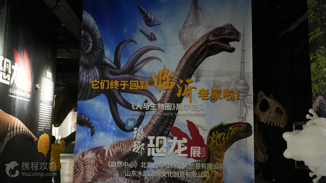 新琅琊恐龙展-《人与生物学》展学空间位于光影琅琊·中国百年电影文化馆内,是沉浸式自然主题展览,结合数字科技、AI交互和化石实物,重现5亿年前临沂的海洋生态及恐龙时代场景。展览通过仿真恐龙皮肤触感、巨型足迹化石和AI引导,体验白垩纪与旧石器时代的自然演化 。展览会利用光影技术和场景布置,带你从五亿年前的临沂古海洋开始,来到了恐龙横行的白垩纪时代。