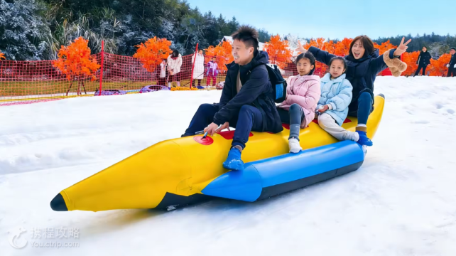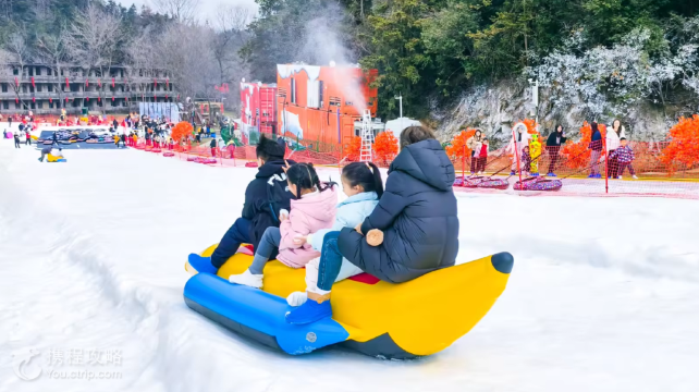 梅岭雪境部落位于南昌市湾里招贤镇,属梅岭生态旅游度假区内,距南昌城区仅30分钟车程,被誉为“南昌后花园”。这里不仅是南昌户外戏雪乐园,更是以古老部落文化为灵魂和打造雪乡场景为目的的冰雪秘境。摒弃了传统雪场的单一玩法,将粗犷、神秘、热情的部落元素深深植入每一寸雪原。踏入这片纯净的冰雪之境,将开启一场穿越凛冬的部落奇缘。 梅岭雪境部落总投资达5千多万元,引进了多台高温降温系统,即使气温不低于零度也可以造雪;自动循环“魔毯”。可控雪面积2万平方米,包含初级雪道,可同时容纳1500人参与冰雪活动。乐园拥有400多个停车位,满足日常自驾游客接待需求。梅岭雪境部落是集戏雪乐园、游乐场、露营、餐饮的综合性景区。拥有200米雪圈道,为江西最长。从坡顶疾驰而下,在长达百米的雪道上感受风驰电掣的快感,让尖叫与欢笑响彻整个山谷。乐园内包含7项戏雪畅玩项目,雪圈速滑、雪地转转树、雪地不倒翁、雪地陀螺、雪地蜗牛、雅马哈小摩托、滑雪盆,多种玩法,让孩子们在冰雪世界中,尽情释放天性、锻炼勇气与智慧。