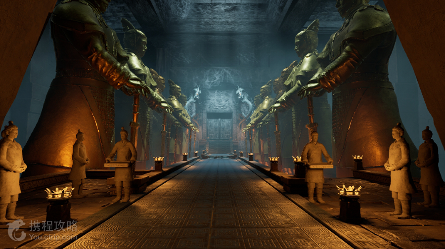 《灵境·探秘秦始皇陵》是一款8K多维度,感官交织的虚实全感体验。在20分钟的体验中,观众通过主动探索的形式挖掘秦始皇帝陵地宫秘境,感受千年历史的震撼脉动;见证70万人劳作建设秦陵的整个过程现场;以第一人称视角亲历“六合毕、四海一”的波澜壮阔。通过高清8KVR头戴设备和动感平台,在视觉、听觉、风感、体感上构成真正全感体验,结合3A级的内容制作水准,让观众从感官上沉浸式穿越至2200年前,置身其中,达到视觉和体感的多维度体验。