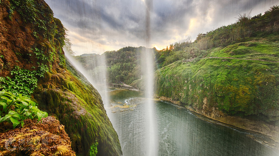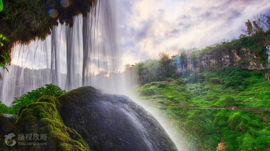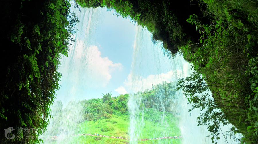 黄果树瀑布景区-水帘洞位于黄果树景区四十米至四十七米的高度上,全长一百三十四米,黄果树瀑布景区-水帘洞由六个洞窗、五个洞厅、三股洞泉和六个通道组成,主要景点有:倒挂仙人掌、古榕悬根、藤帘、袖珍花园、鼓风口、水晶宫、摸瀑台等。穿越黄果树瀑布景区-水帘洞,还有一个绝妙奇景,从各个洞窗中观赏到黄果树瀑布景区-犀牛潭上的彩虹,这里的彩虹不仅是七彩俱全的双道而且是动态的,只要天晴,从上午九时至下午五时,都能看到,并随你的走动而变化和移动。前人:"天空之虹以苍天作衬,犀牛潭之虹以雪白之瀑布衬之",故题"雪映川霞"。 电视连续剧《西游记》中的“花果山”、“水帘洞”,曾给中外观众留下过美好而深刻的印象。也使这个外景拍摄地黄果树景区锦上添花、声名远播,吸引了无数游客来此一睹为快。