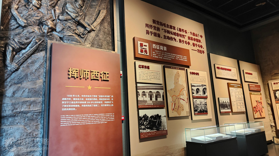 同心县红军西征纪念园座落在宁夏中部的同心县县城南郊,占地336余亩,是国内以红军西征为主题的纪念馆,。红军西征纪念馆位于纪念园中部,建成于2006年10月,以详实的历史文献、图片、文物,再现了红军三大主力会聚同心,开创民族区域自治先河的不朽业绩。作为主要支撑的红军西征纪念馆,原馆舍建筑面积1680平方米、主展厅使用面积537平方米。展厅部分层高为6.5米,其余部分层高为4.2米。本次改造提升,为一层框架结构,总建筑高度为10.15米。总建筑面积为2589平方米,其中保留主体结构的面积为583平方米,新建建筑面积为2006平方米。建筑抗震设防烈度为8度,耐火等级为二级,屋面防水等级为II级,建筑设计使用年限为50年。本次策展在尊重历史再现历史的原则上,充分利用场景复原、雕塑、油画、声光电多媒体技术等多元化的表现手段一一阐述序厅,红军西征、红二、四军长征北上经过宁夏、传承红色基因,赓续革命精神、尾厅五大部分内容。序厅主要讲述前言、主题展标《西征历史丰碑》、主题视觉形象等内容。第一部分:挥师西征。主要讲述红军西征的历史背景、西征过程以及取得的辉煌功绩,创建地方党组织和政权,执行党的民族政策等内容。第二部分:红二、四军长征到达宁夏。主要讲述红二、四军长征北上经过宁夏的革命史迹、遗址和历史事件。第三部分:传承红色基因,赓续革命精神。主要讲述老一辈无产阶级革命家在同心的光辉事迹,以及同心各族人民赓续革命精神共同团结奋斗繁荣发展等内容。尾厅。打造主题影片,阐述同心各族人民从社会主义建设时期一直到新时代团结奋进摆脱贫困走上富裕,城市面貌焕然一新,感党恩、听党话、跟党走。