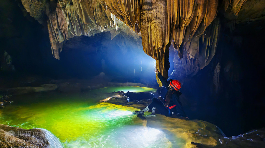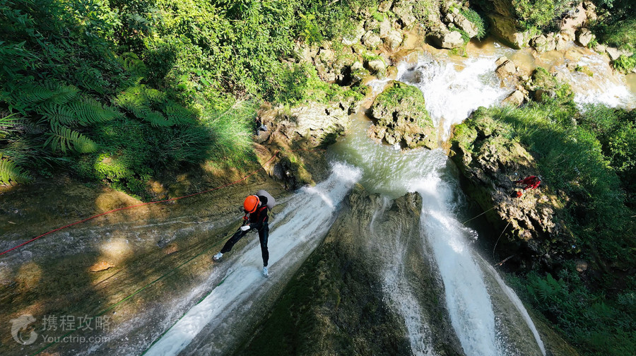 神龙谷坐落于贵阳市开阳县南龙乡,距市区约1.5小时车程,交通便捷。景区以罕见的钙化瀑布群为核心景观,集雄、奇、险、秀于一身,是贵州喀斯特地貌中的一颗璀璨明珠。作为省内稀有的钙化瀑布,其金黄的岩壁与清澈的水流交相辉映,四季景致分明,全年皆可游览。同时,这里也是贵州省内公认的经典瀑降线路之一,吸引了无数户外爱好者前来挑战。景区匠心打造了“徒步+探洞+瀑降”的综合探险体验项目:— 丛林徒步:穿行原始林带,尽享天然氧吧;— 洞穴桨板:深入地下溶洞,泛舟暗河之上;— 飞拉达瀑降:沿瀑而降,体验垂直极限的快感。无论您是寻求刺激的探险家,还是向往自然的旅行者,神龙谷都能为您提供一步到位的上佳户外体验。